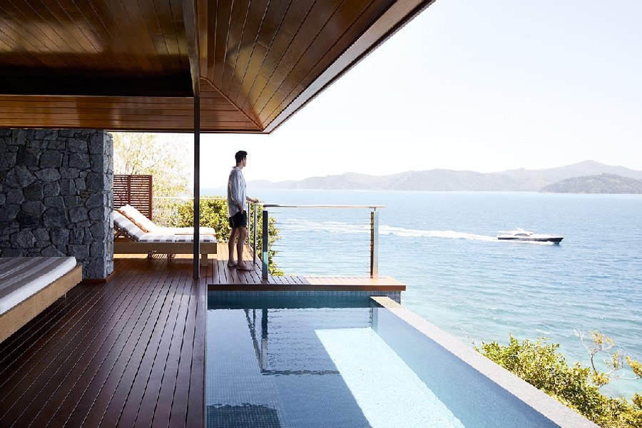 Qualia to miejsce, w którym luksus nie konkuruje z krajobrazem, lecz pozwala mu grać pierwszoplanową rolę. Hotel położony jest na północnym krańcu Hamilton Island, w sercu archipelagu Whitsundays, tuż przy jednym z najpiękniejszych fragmentów Wielkiej Rafy Koralowej. Usytuowany na prywatnym półwyspie, wysoko nad linią morza, zapewnia widoki na turkusowe wody i rozrzucone po horyzoncie wyspy. Już sam dojazd – promem lub małym samolotem – wprowadza w poczucie odosobnienia i ekskluzywności. Ta wyjątkowa lokalizacja znajduje swoje naturalne przedłużenie w udogodnieniach, które zaprojektowano z myślą o absolutnym komforcie i prywatności. Goście mają do dyspozycji basen infinity, luksusowe spa oferujące zabiegi inspirowane naturą regionu, nowoczesne centrum fitness, butik oraz prywatną plażę. Charakterystycznym elementem pobytu są elektryczne buggy, którymi Goście poruszają się po terenie hotelu, co dodatkowo podkreśla swobodny, a jednocześnie dopracowany styl qualii. Obsługa działa dyskretnie, niemal niewidocznie, dbając o każdy detal pobytu. Goście mogą wyruszyć na prywatny lot helikopterem nad Heart Reef, przeżyć niezapomnianą przygodę podczas snorkelingu na Wielkiej Rafie Koralowej, popłynąć na zapierającą dech w piersiach plażę Whitehaven Beach lub po prostu oddać się kąpieli w krystalicznie czystej wodzie.
