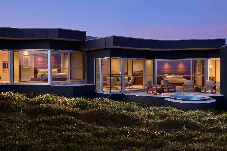 Zakwaterowanie w Southern Ocean Lodge zostało zaprojektowane jako integralna część doświadczenia obcowania z dziką przyrodą Kangaroo Island. Hotel oferuje 26 luksusowych apartamentów typu suite, rozmieszczonych wzdłuż klifów w taki sposób, aby każdy z nich zapewniał maksymalną prywatność oraz niezakłócony widok na Ocean Południowy. Niewielka liczba pokoi podkreśla kameralny charakter obiektu i pozwala utrzymać wysoki poziom indywidualnej obsługi. Wnętrza apartamentów utrzymane są w minimalistycznym, nowoczesnym stylu, który nie konkuruje z krajobrazem, lecz stanowi dla niego spokojne tło. Dominują naturalne materiały, stonowana kolorystyka oraz duże, panoramiczne przeszklenia kadrujące surową linię wybrzeża. Każdy apartament posiada prywatny taras, z którego można obserwować fale rozbijające się o klify oraz spektakularne zachody słońca. Wyposażenie apartamentów podporządkowane jest zarówno komfortowi, jak i funkcjonalności. W standardzie znajduje się przestronna sypialnia, elegancka część wypoczynkowa z sofą, minibar z wyselekcjonowanymi trunkami oraz indywidualnie sterowana klimatyzacja i ogrzewanie. W wybranych apartamentach dodatkowym elementem są kominki, które szczególnie w chłodniejsze wieczory wzmacniają atmosferę przytulności i pozwalają jeszcze pełniej doświadczyć surowego klimatu południowego wybrzeża. Łazienki zaprojektowano jako przestrzenie relaksu – są obszerne, wyposażone w wolnostojące wanny, oddzielne prysznice, podwójne umywalki oraz wysokiej klasy kosmetyki. Duże okna w części łazienek umożliwiają podziwianie oceanu również podczas kąpieli, co stanowi jeden z najbardziej charakterystycznych elementów pobytu w lodge’u. Southern Ocean Lodge oferuje również bardziej przestronne kategorie apartamentów oraz luksusowe wille, z których część posiada prywatne baseny. Całość tworzy spójną ofertę zakwaterowania, w której luksus przejawia się nie w nadmiarze dekoracji, lecz w przestrzeni, ciszy i doskonale przemyślanych detalach.