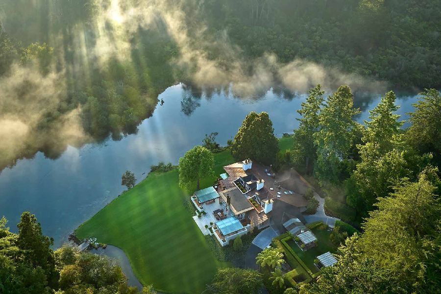 Huka Lodge położony jest na Północnej Wyspie Nowej Zelandii, w bezpośrednim sąsiedztwie miasta Taupo, nad krystalicznie czystą rzeką Waikato i zaledwie kilka minut spacerem od spektakularnych wodospadów Huka Falls. Lokalizacja ta zapewnia idealną równowagę pomiędzy bliskością natury a łatwym dostępem do atrakcji regionu – Jeziora Taupo, pól geotermalnych, lasów i gór. Sam lodge otoczony jest rozległymi, starannie zaprojektowanymi ogrodami, które tworzą atmosferę prywatnej rezydencji, a nie klasycznego hotelu. Huka Lodge charakteryzuje się wyjątkowym połączeniem historycznego dziedzictwa i nowoczesnego luksusu. Początki obiektu sięgają lat 20. XX wieku, kiedy był on ekskluzywnym obozem wędkarskim, dziś natomiast uchodzi za ikonę nowozelandzkiej gościnności. Kameralna skala, absolutna dbałość o detale oraz bardzo osobista obsługa sprawiają, że pobyt ma tu charakter niemal prywatny. Goście przyjeżdżają tu po ciszę, elegancję i poczucie oderwania od świata.