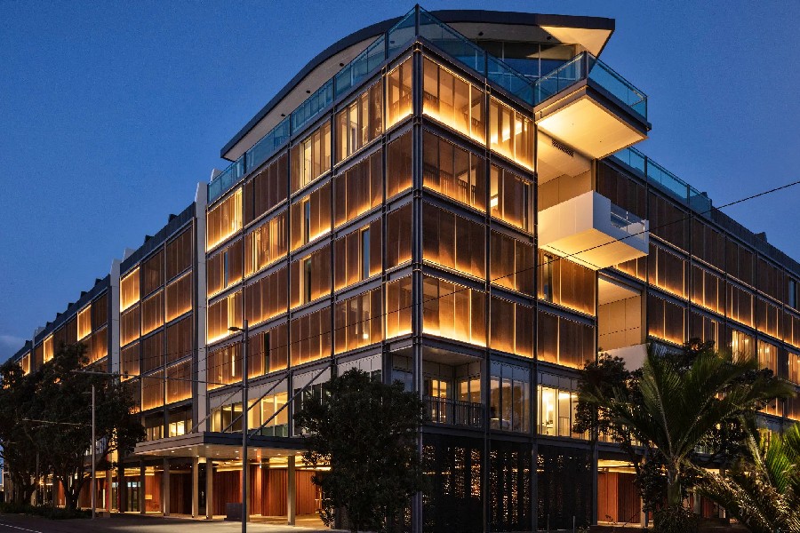 Park Hyatt Auckland położony jest w odrestaurowanej dzielnicy Wynyard Quarter, tuż nad brzegiem Waitemata Harbour i w bliskim sąsiedztwie mariny oraz tętniącej życiem przystani. To położenie oferuje przepiękne widoki na wodę, zatokę i panoramę miasta, a jednocześnie pozwala na spacer do najlepszych restauracji i atrakcji w centrum Auckland. Park Hyatt to luksusowy, pięciogwiazdkowy hotel odznaczający się nowoczesnym podejściem do stylu nadbrzeżnego życia i elegancką architekturą zewnętrzną oraz wnętrzami zaprojektowanymi przez znane pracownie, w których wykorzystano również elementy kultury maoryskiej.