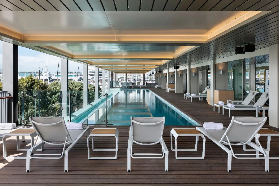 W hotelu znajduje się bogata oferta udogodnień i aktywności, które sprawiają, że pobyt tu jest nie tylko komfortowy, ale też pełen możliwości relaksu i ruchu. Goście mają do dyspozycji 25-metrowy basen infinity z widokiem na port, pełne centrum fitness czynne 24 godziny na dobę, strefę hydroterapii z sauną i łaźnią parową oraz luksusowe spa oferujące masaże, aromaterapię i zabiegi pielęgnacyjne. Basen jest osłonięty i podgrzewany przez cały rok, co czyni go atrakcyjnym nawet przy chłodniejszej pogodzie. W hotelu działa także całodobowa obsługa konsjerża, usługi pralni i parkowania oraz przestrzenie eventowe idealne do spotkań biznesowych czy ślubnych uroczystości.