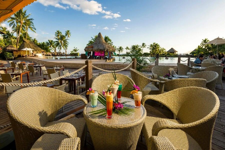 W takim otoczeniu gastronomia staje się naturalnym przedłużeniem wakacyjnej przygody. Hotel dysponuje trzema restauracjami i trzema barami, które zróżnicowaną ofertą odpowiadają na potrzeby Gości o różnych gustach. Te Tiare Restaurant, położona przy basenie z widokiem na Mooreę, serwuje świeże ryby, lekkie sałatki, międzynarodowe dania i mięsa, a atmosfera otwartego tarasu dodaje posiłkom wakacyjnej lekkości. Z kolei Le Lotus Restaurant, usytuowana nad wodą, oferuje romantyczne kolacje przy francuskim winie i wyszukanych deserach, co sprawia, że wieczór staje się wyjątkowym kulinarnym przeżyciem. Bary hotelowe z kolei są doskonałym miejscem, aby w spokoju zakończyć dzień tropikalnych doświadczeń, popijając koktajl przy zachodzie słońca.