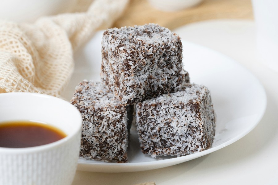 Lamingtons to tradycyjne australijskie ciastka z biszkoptu, obtaczane w czekoladowej polewie i wiórkach kokosowych, uznawane za jeden z najbardziej rozpoznawalnych deserów kraju.