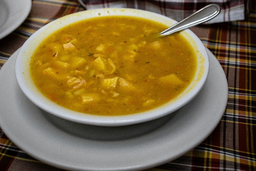 Gęsta zupa z kurczakiem, trzema rodzajami ziemniaków i ziołem guasca, tradycyjnie podawana z ryżem, kaparami i awokado.