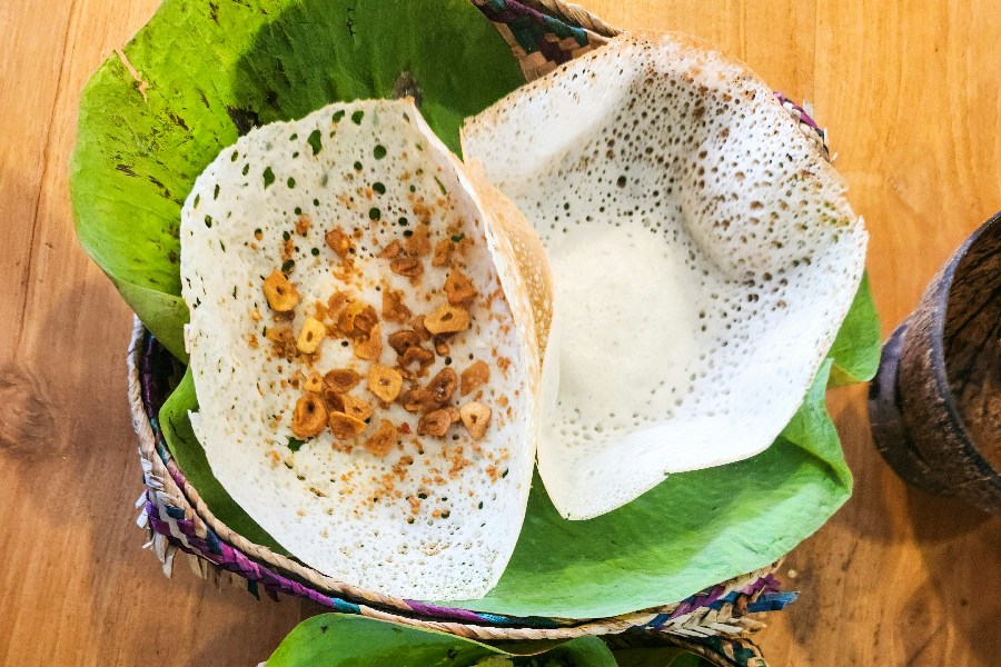 Dzień na Sri Lance najlepiej rozpocząć tak, jak robią to mieszkańcy. Typowe lankijskie śniadanie jest sycące i pikantne. Najpopularniejszym daniem są hoppers, czyli cienkie naleśniki z mąki ryżowej i mleka kokosowego. Mają kształt miseczki, a ich brzegi są chrupiące. W środku często znajduje się jajko sadzone. Hoppers podaje się z różnymi dodatkami: pikantnym sosem sambal z wiórków kokosowych, papryczki chili, cebuli i soku z limonki albo z warzywnym curry. Warto też spróbować string hoppers – cienkich nitek ryżowych uformowanych w małe placki i gotowanych na parze. Zazwyczaj podaje się je z mlekiem kokosowym i sosem curry z soczewicy (dal).