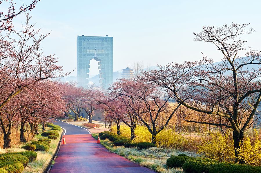 Wiosną okolice Bomun Lake zamieniają się w jedną z najbardziej fotogenicznych przestrzeni w mieście. Kilkukilometrowa trasa spacerowa wokół jeziora obsadzona jest drzewami wiśni, które na przełomie marca i kwietnia pokrywają się jasnoróżowymi kwiatami. To moment krótki, zwykle trwający około tygodnia, ale przyciągający mieszkańców i turystów z całego kraju.