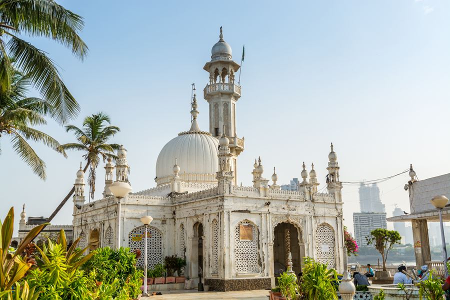 Haji Ali Dargah to miejsce rozpoznawalne już z daleka dzięki swojej niezwykłej lokalizacji. Mauzoleum i meczet znajdują się na niewielkiej wysepce na Morzu Arabskim, połączonej z lądem wąską groblą. Odwiedzając to miejsce, od razu zauważycie, że rytm zwiedzania wyznacza tu natura – droga prowadząca do sanktuarium jest dostępna tylko podczas odpływu. Haji Ali Dargah powstało w XV wieku i jest poświęcone świętemu muzułmańskiemu, Haji Aliemu Shahowi Bukhariemu, bogatemu kupcowi, który porzucił życie doczesne i poświęcił się duchowości. Według tradycji przed śmiercią polecił, by jego ciało umieszczono w trumnie wrzuconej do morza. Legenda głosi, że trumna zatrzymała się właśnie w miejscu, gdzie dziś stoi mauzoleum. Architektura obiektu łączy elementy islamu z lokalnymi wpływami indyjskimi. Biała bryła kontrastuje z błękitem morza, a wnętrze zdobią misternie rzeźbione marmury i dekoracje. Haji Ali Dargah jest miejscem pielgrzymek nie tylko dla muzułmanów – przychodzą tu również wyznawcy innych religii, wierząc w duchową moc tego miejsca i możliwość spełnienia próśb. Przez lata sanktuarium było narażone na silne działanie fal i erozję. Dopiero w XXI wieku przeprowadzono kompleksowe prace wzmacniające konstrukcję i groblę. Warto też wiedzieć, że w 2016 roku obiekt znalazł się w centrum debaty społecznej dotyczącej dostępu kobiet do części mauzoleum, co zakończyło się przywróceniem im pełnych praw wstępu.