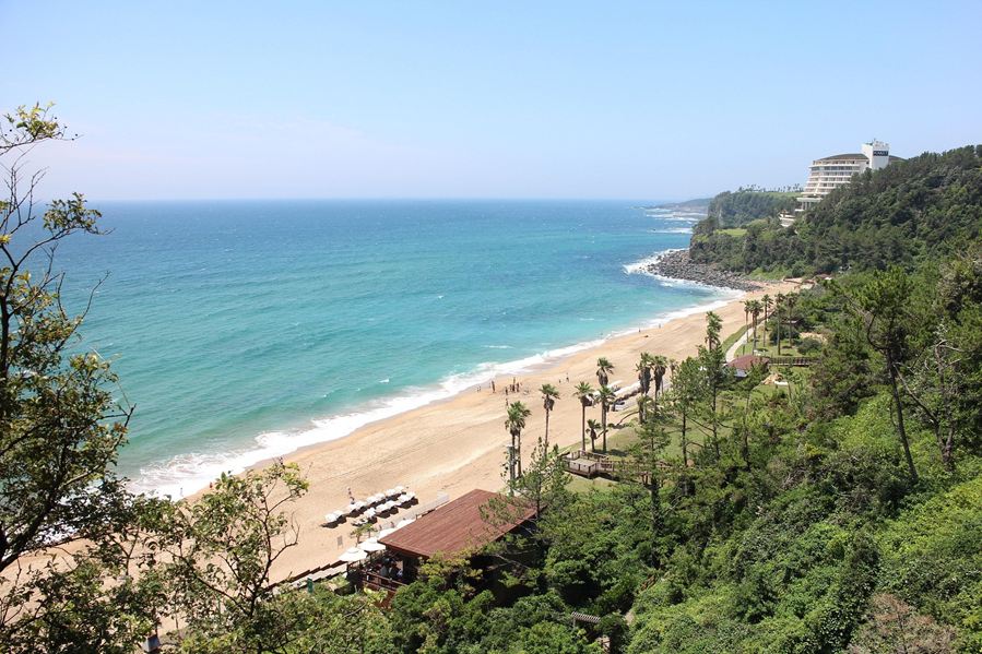 Jedna z najładniejszych plaż Jeju, znana z turkusowej laguny i miękkiego, jasnego piasku.