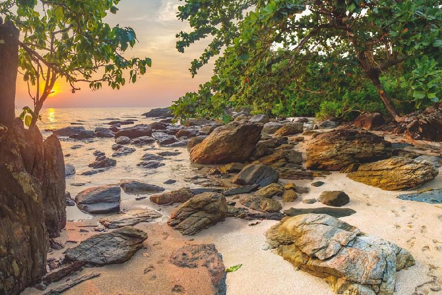 Paradise beach, Thailand, palm trees, and white sand – you've just arrived on the island of Koh Chang. As the name suggests, White Sand Beach boasts light sand that's pleasant to the touch and eye, turning to pebbles only at its southern end. It's the perfect place for a longer stay: the hotel infrastructure is very well-developed, ensuring that every tourist, regardless of their budget, will find the perfect spot. The same applies to restaurants – on White Sand, you'll find both luxurious restaurants and bars where you can grab a quick snack, discover the flavors of Thailand, and if you're longing for European cuisine, you'll easily find a steak or burger. In the evenings, the beach comes alive with fire shows and beach parties, and the music doesn't stop until dawn. During the day, it's worth taking a walk along the 3-kilometer beach or climbing to the viewpoint. The hill offers beautiful views of the surrounding area.