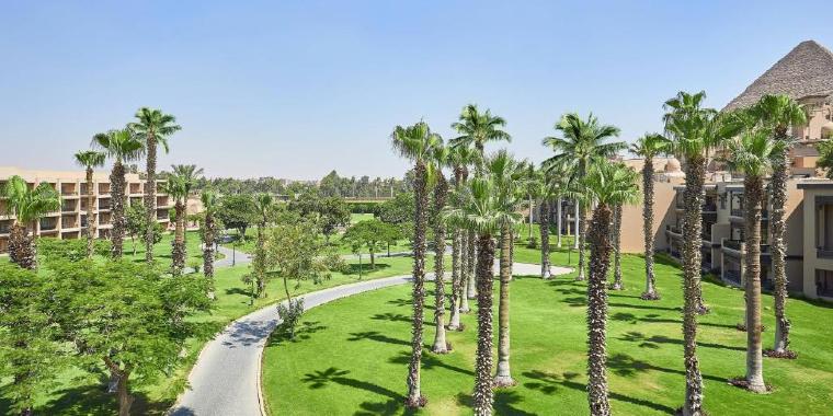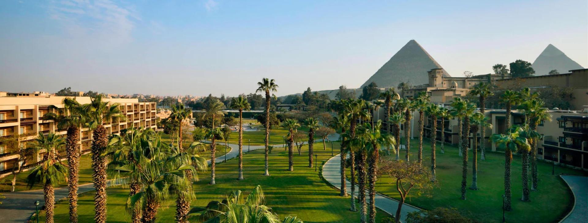 Hotel położony jest w Gizie, u stóp słynnych piramid, w jednej z najbardziej rozpoznawalnych scenerii świata. W bezpośrednim sąsiedztwie znajduje się nowo otwarte Wielkie Muzeum Egipskie, jedno z największych muzeów archeologicznych na świecie. Okolica sprzyja spacerom po rozległych, zielonych ogrodach hotelowych, a w niewielkiej odległości znajdują się także liczne restauracje i punkty usługowe. Do centrum Kairu można dotrzeć samochodem w około 30–40 minut, w zależności od natężenia ruchu.