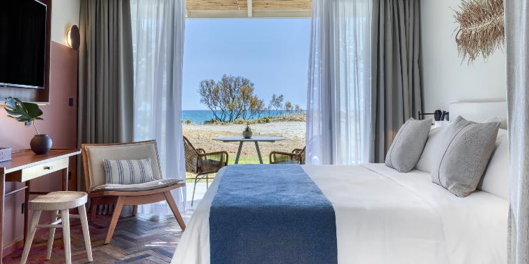 - Sapphire Serenity Retreat (27 m²) – liczba osób: maks. 2 dorosłych + dziecko, łóżko podwójne i rozkładana sofa, widok na morze, łazienka z prysznicem.