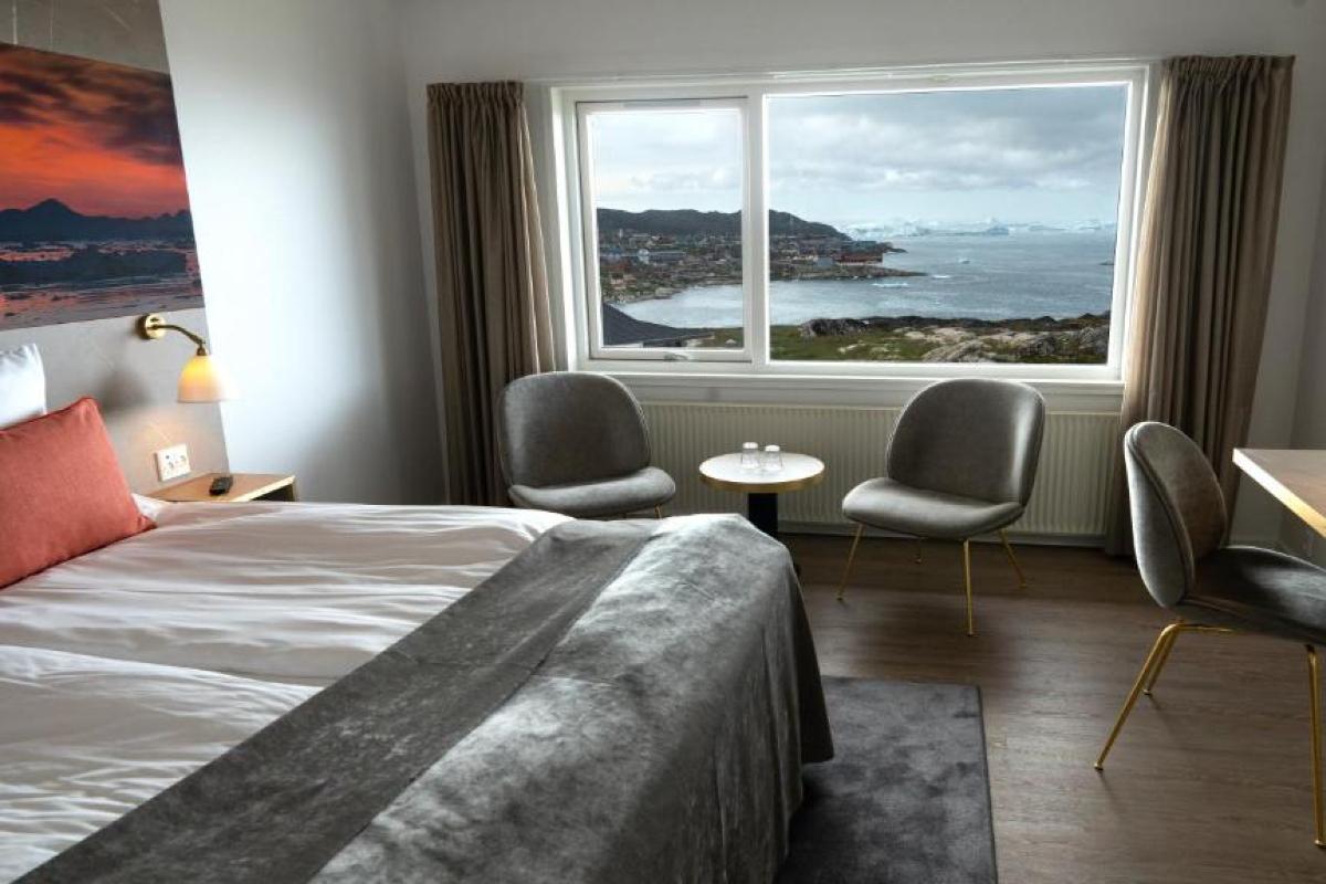 Hotel położony jest w Ilulissat nad Zatoką Disko, z widokami na okoliczne wody i góry lodowe. To bardzo dobre miejsce do zwiedzania regionu fiordu lodowego Ilulissat wpisanego na listę UNESCO oraz do rejsów wśród gór lodowych. Do centrum Ilulissat jest ok. 1,5 km (zwykle kilkanaście–kilkadziesiąt minut spaceru). Lotnisko w Ilulissat znajduje się w niedużej odległości, a dojazd zajmuje zwykle kilka minut.