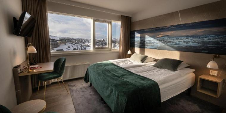 - Superior (23 m²) – liczba osób: maks. 2 dorosłych, łóżko typu king-size lub dwa pojedyncze, widok na fiord lodowy i zatokę, łazienka z prysznicem.