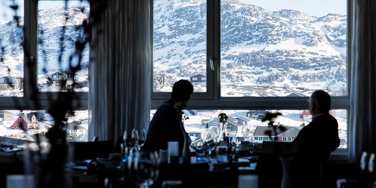 • Skyline Bar – bar na najwyższej kondygnacji z panoramicznym widokiem na Nuuk, fiord i góry.