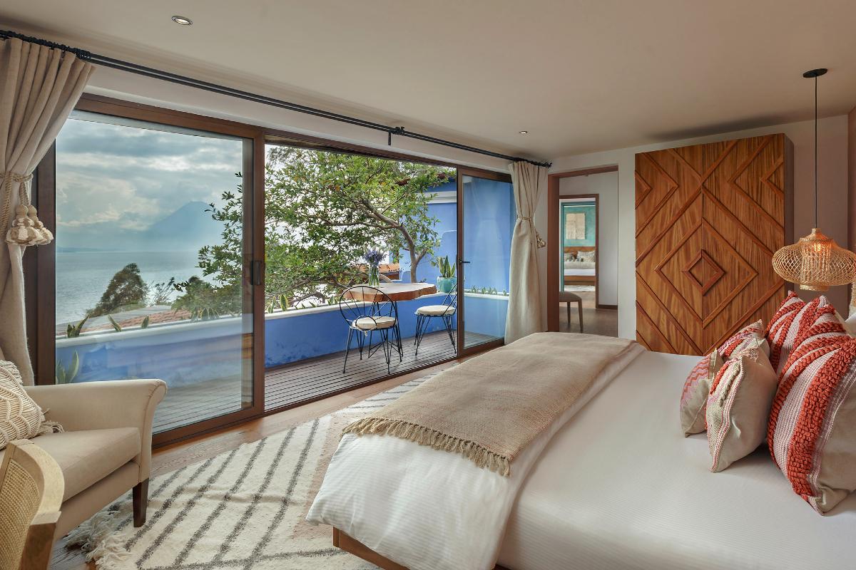- Santa Catarina Master Suite (44 m²) – liczba osób: maks. 2 dorosłych, łóżko typu king-size, przestronny salon, taras z panoramicznym widokiem na jezioro Atitlan i wulkany, łazienka z prysznicem.