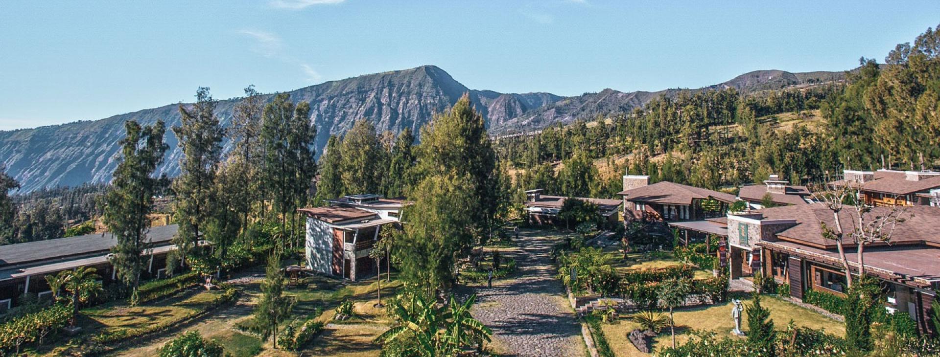 Hotel położony jest w miejscowości Sukapura, na wysokości około 2000 m n.p.m., w bezpośrednim sąsiedztwie Parku Narodowego Bromo Tengger Semeru. To jedno z najlepszych miejsc wypadowych do obserwacji słynnego wschodu słońca nad kraterem wulkanu Bromo. W okolicy znajdują się trasy trekkingowe, punkty widokowe i lokalne wioski Tenggerów. Dojazd z lotniska Abdul Rachman Saleh w Malangu zajmuje ok. 2 godziny (ok. 55 km).