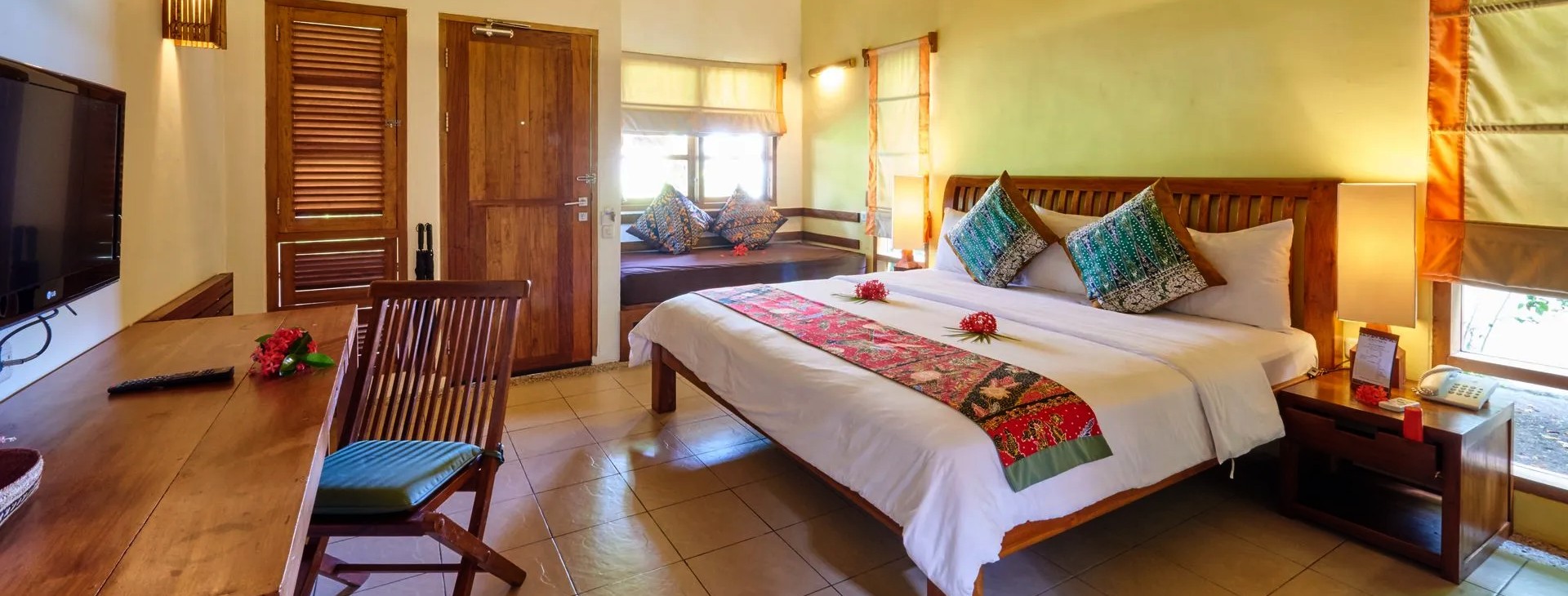 - Garden Pool View Room (38 m²) – liczba osób: maks. 3 dorosłych, łóżko typu king-size lub dwa łóżka pojedyncze, możliwość dostawki, taras, widok na ogród i basen.