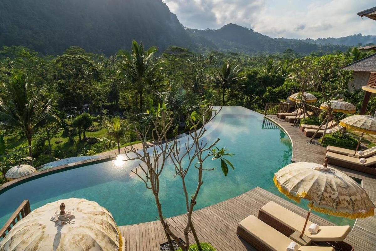 Otoczony bujną, tropikalną roślinnością pięciogwiazdkowy hotel Wapa di Ume Sidemen zlokalizowany jest w malowniczym krajobrazie wschodniej części Bali, ze zjawiskowymi widokami na tarasy ryżowe i wulkan Agung. Wapa di Ume stanowi kwintesencję ucieczki od codziennego zgiełku, oferując swoim Gościom niezrównaną okazję do zanurzenia się w spokojnym życiu balijskiej wsi. Architektura hotelu czerpie z lokalnych tradycji, harmonijnie łącząc balijską estetykę z nowoczesnymi udogodnieniami, zapewniając Gościom wyjątkowe doświadczenie. Oferuje wiele aktywności, od odprężających zabiegów spa, przez sesje jogi na świeżym powietrzu, po warsztaty kulinarnie, pozwalające Gościom zagłębić się w bogactwo lokalnej tradycji. Dla miłośników przyrody, bezpośrednie otoczenie hotelu oferuje niezliczone możliwości aktywnego wypoczynku, w tym trekking, wycieczki rowerowe, rafting i eksplorację naturalnego krajobrazu Bali.