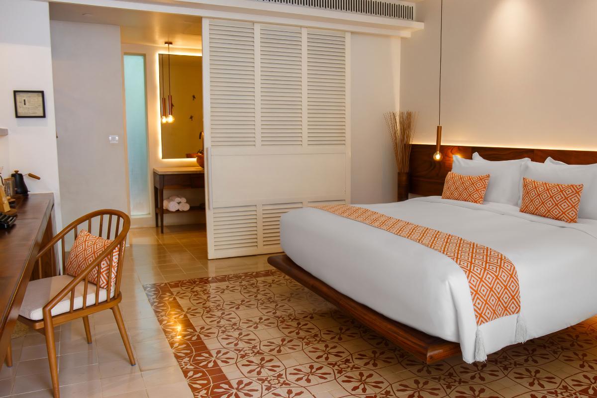 - Colonial Pool Access Room (38 m²) – liczba osób: maks. 2 dorosłych + dziecko, łóżko podwójne, taras z bezpośrednim wyjściem do basenu.