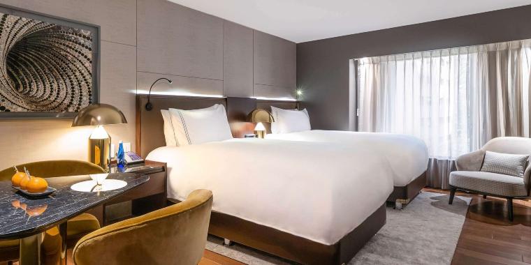Hotel oferuje 102 pokoje i apartamenty. Wnętrza utrzymane są w eleganckim stylu, z wykorzystaniem wysokiej jakości materiałów oraz stonowanej kolorystyki. Standardowe wyposażenie obejmuje klimatyzację, Wi-Fi, telewizor, minibar, sejf, zestaw do parzenia kawy i herbaty, ekspres do kawy Nespresso, zestaw do prasowania, stację dokującą do Ipoda, kosmetyki L’Occitane.