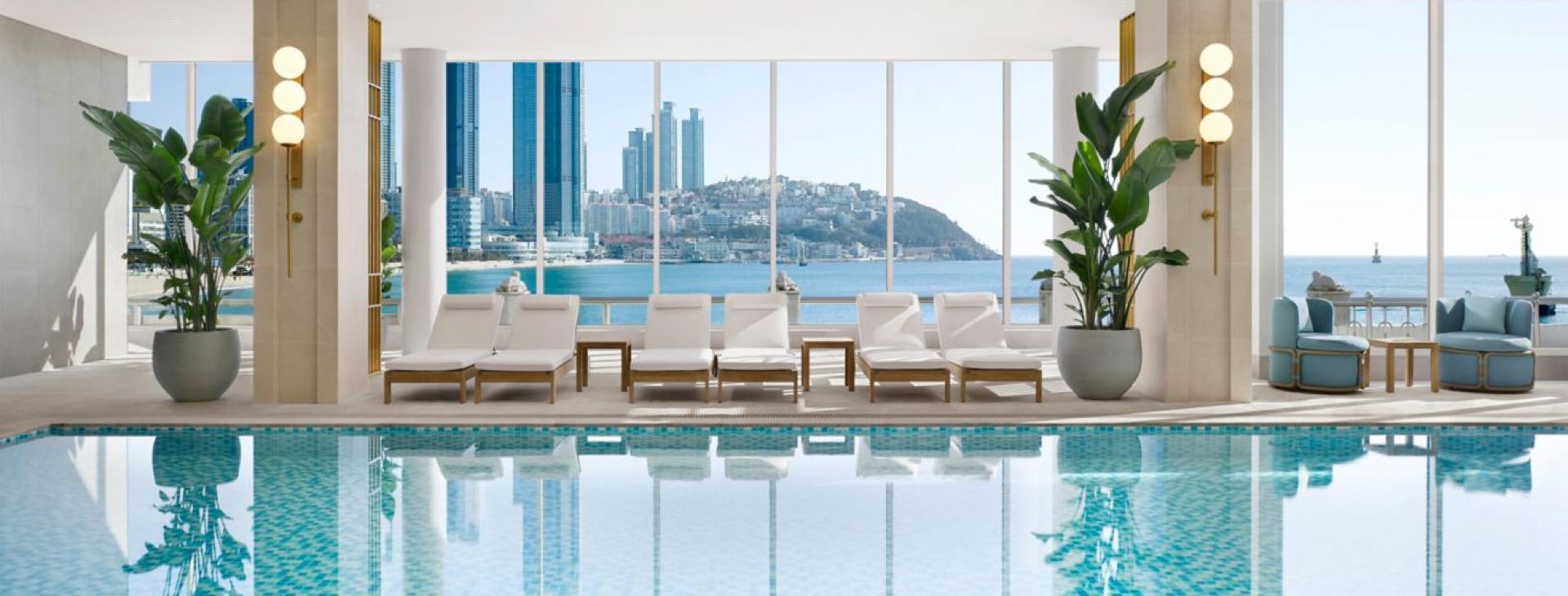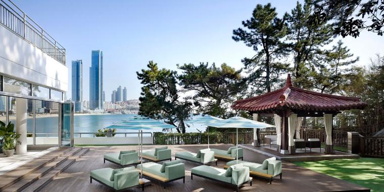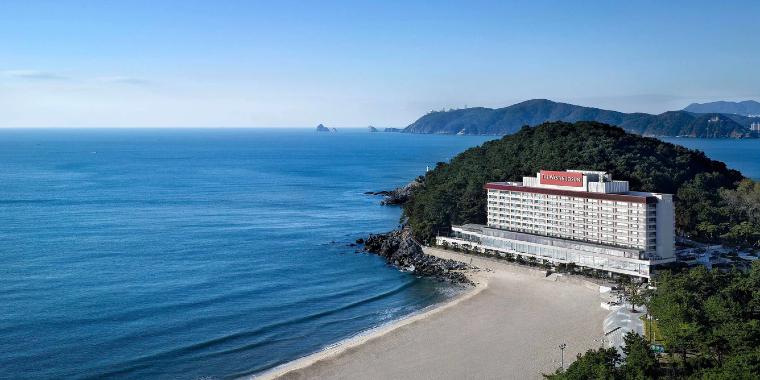 Hotel położony jest na końcu plaży Haeundae, bezpośrednio przy szerokim, piaszczystym odcinku wybrzeża i przy wejściu do parku na półwyspie Dongbaek. Z jednej strony z budynku wychodzi się na promenadę i plażę, z drugiej w kilka minut można dojść do ścieżek spacerowych, punktów widokowych i centrum konferencyjnego Nurimaru APEC House na Dongbaek. W zasięgu krótkiego spaceru znajdują się liczne kawiarnie, restauracje z owocami morza, sklepy oraz oceanarium Busan SEA LIFE. Do stacji metra Dongbaek dojście zajmuje około 10 minut, do stacji Haeundae około 10–15 minut. Centrum kongresowe BEXCO i dzielnica Centum City oddalone są o około 10 minut jazdy samochodem, a dojazd na lotnisko Gimhae zajmuje przeciętnie 40–50 minut, w zależności od natężenia ruchu.