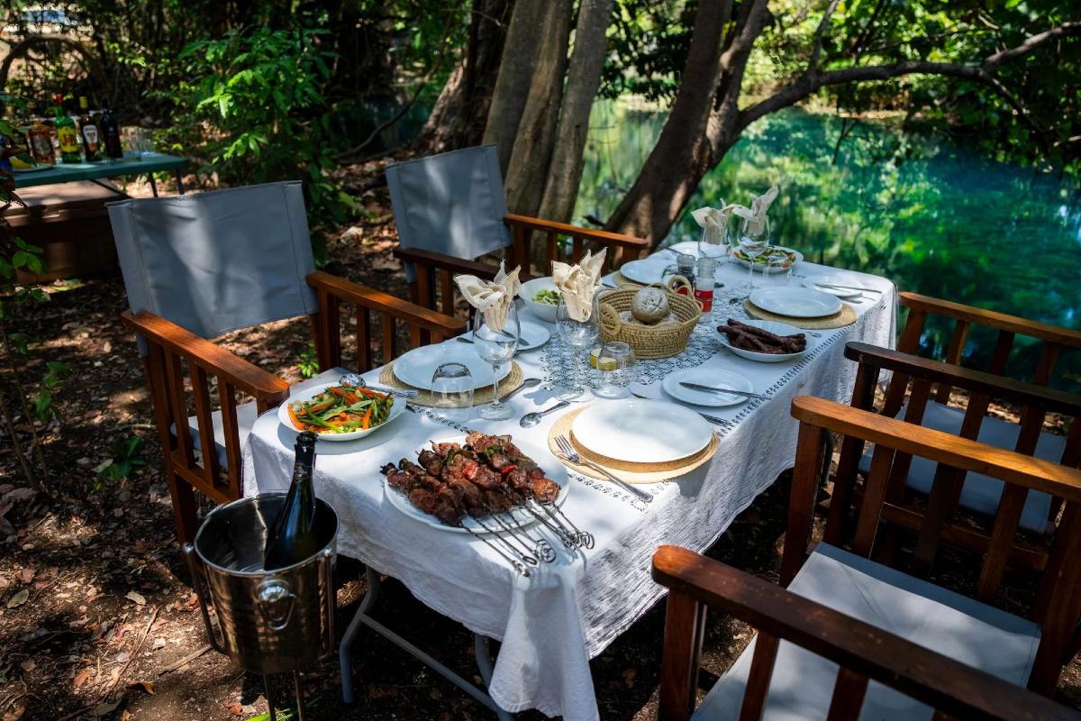 - Restauracja – serwuje proste, świeże posiłki inspirowane kuchnią lokalną i międzynarodową, dostosowane do warunków i charakteru obozu.