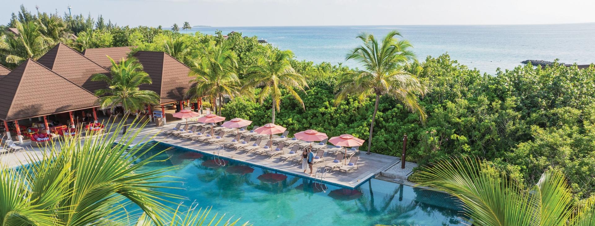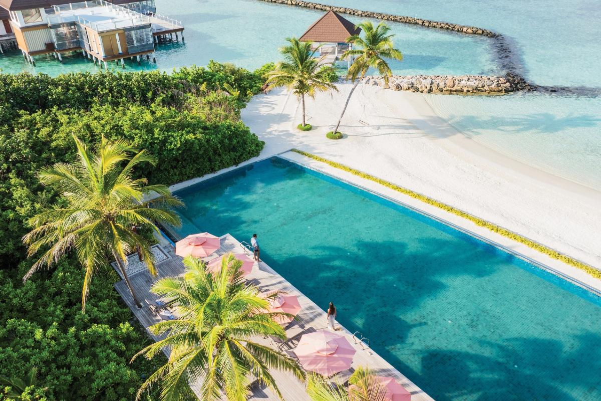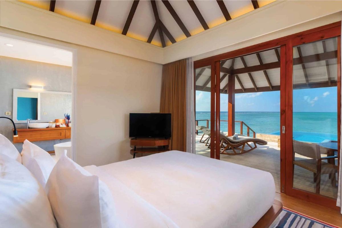 - Water Villa with Pool (95 m²) – liczba osób: maks. 3 dorosłych lub 2 dorosłych + dziecko, łóżko typu king-size, willa nad wodą, prywatny basen na tarasie, bezpośrednie zejście do oceanu, łazienka z prysznicem i wanną z hydromasażem.