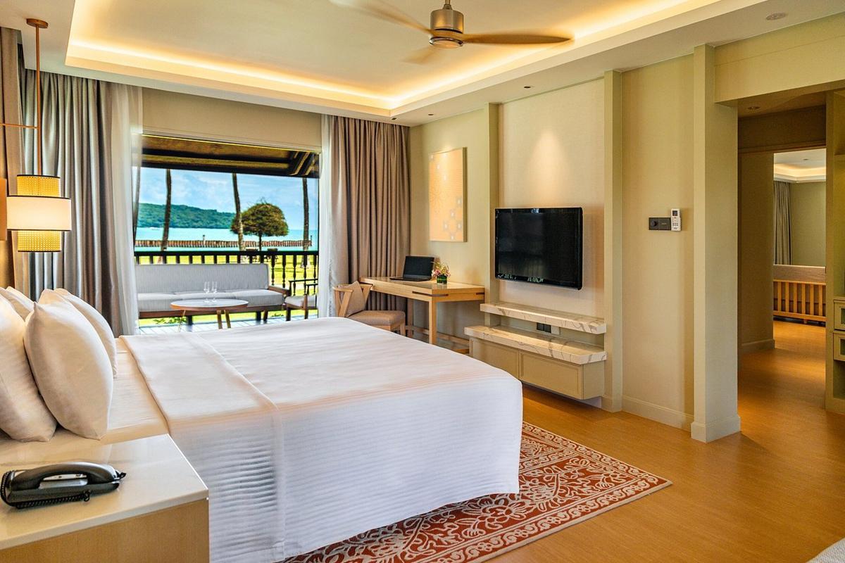 - Pelangi Suite (97 m²) – liczba osób: maks. 2 dorosłych + 2 dzieci (do 12 lat), łóżko typu king i jedno pojedyncze, dwie werandy, widok na ogród, blisko morza, oddzielna część wypoczynkowa, jadalnia, ekspres do kawy na kapsułki Nespresso, łazienka z prysznicem i wanną, zestaw kosmetyków, ekskluzywny dostęp do udogodnień w The Lounge.