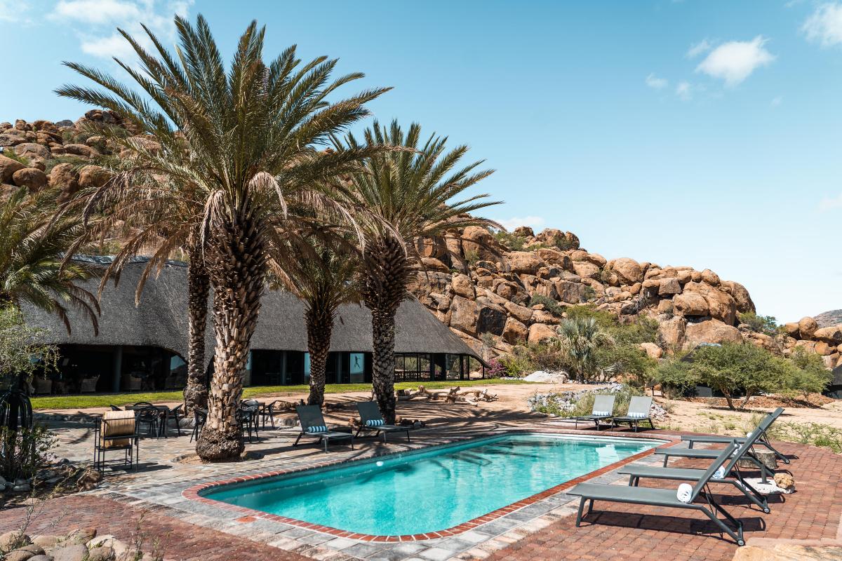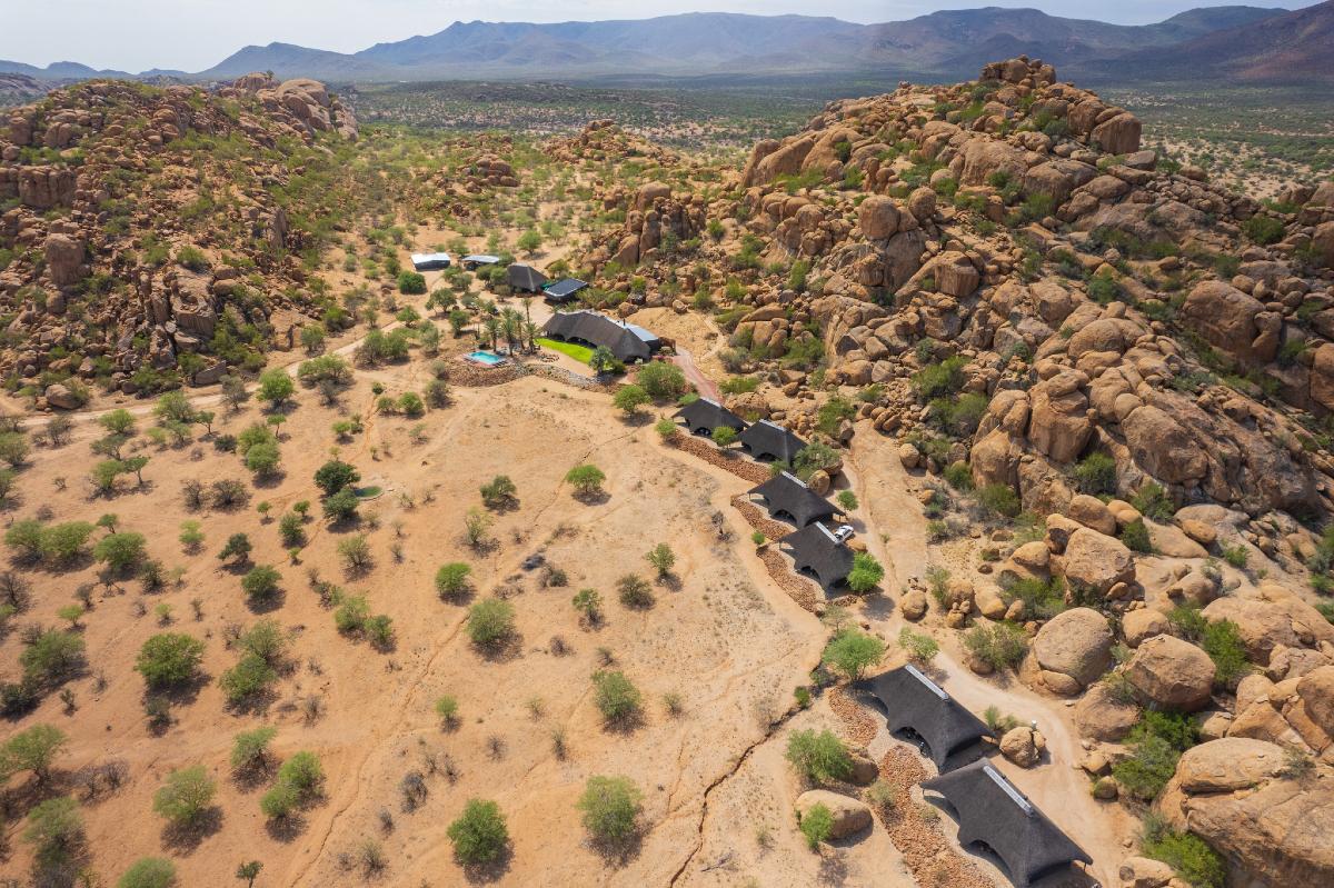 • Położenie w jednym z najciekawszych rejonów geologicznych Namibii – w otoczeniu granitowych formacji gór Erongo