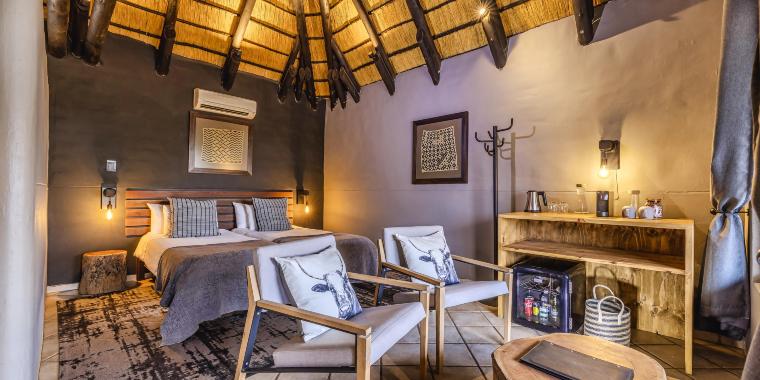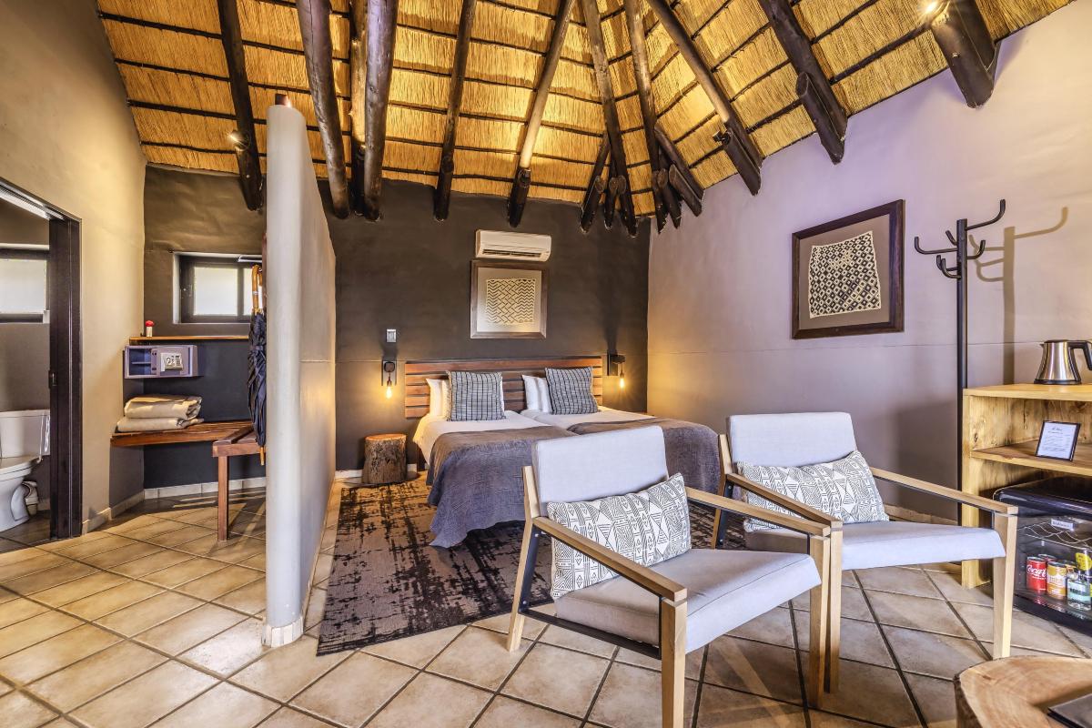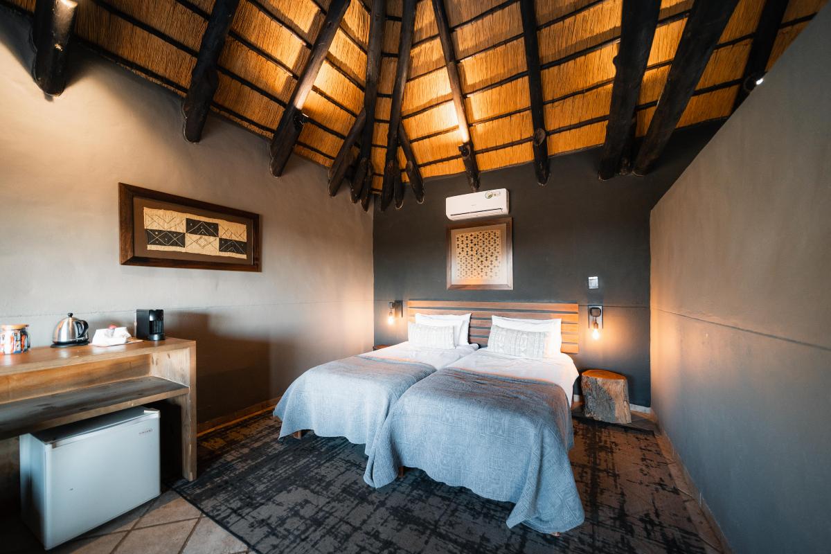 • Twin Room (35 m²) – liczba osób: maks. 2 dorosłych, dwa łóżka pojedyncze lub jedno podwójne, klimatyzacja, łazienka z prysznicem, taras z widokiem na góry Erongo.