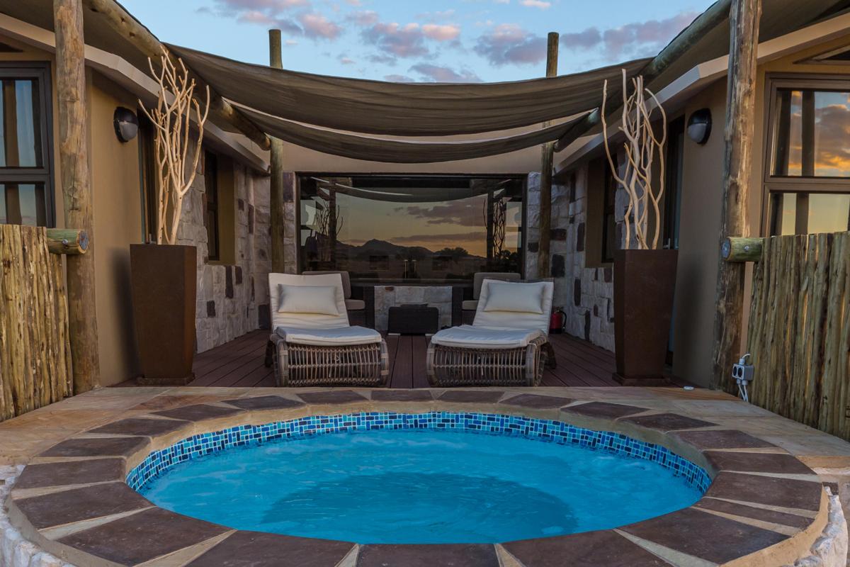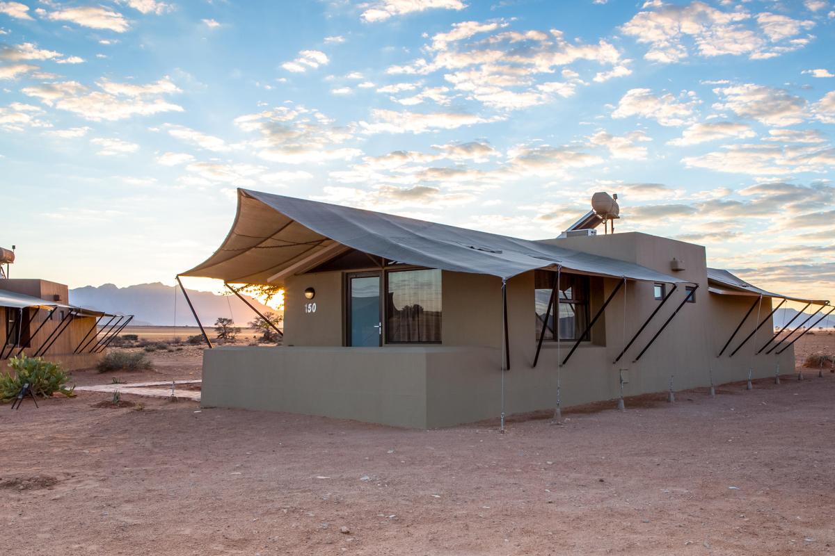 Sossusvlei Lodge oferuje 44 przestronne domki, zaprojektowane w stylu safari z wykorzystaniem naturalnych materiałów, dzięki czemu harmonijnie komponują się z pustynnym krajobrazem. Każdy pokój posiada prywatny taras z widokiem na rozległe równiny Namib, klimatyzację, łazienkę en-suite, część wypoczynkową, zestaw do parzenia kawy i herbaty, minibar oraz sejf.