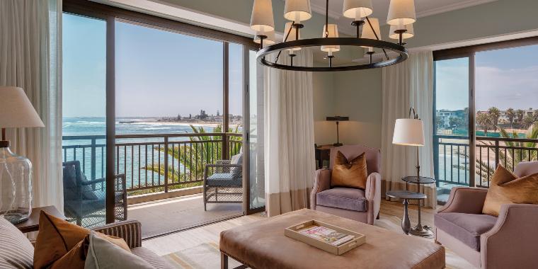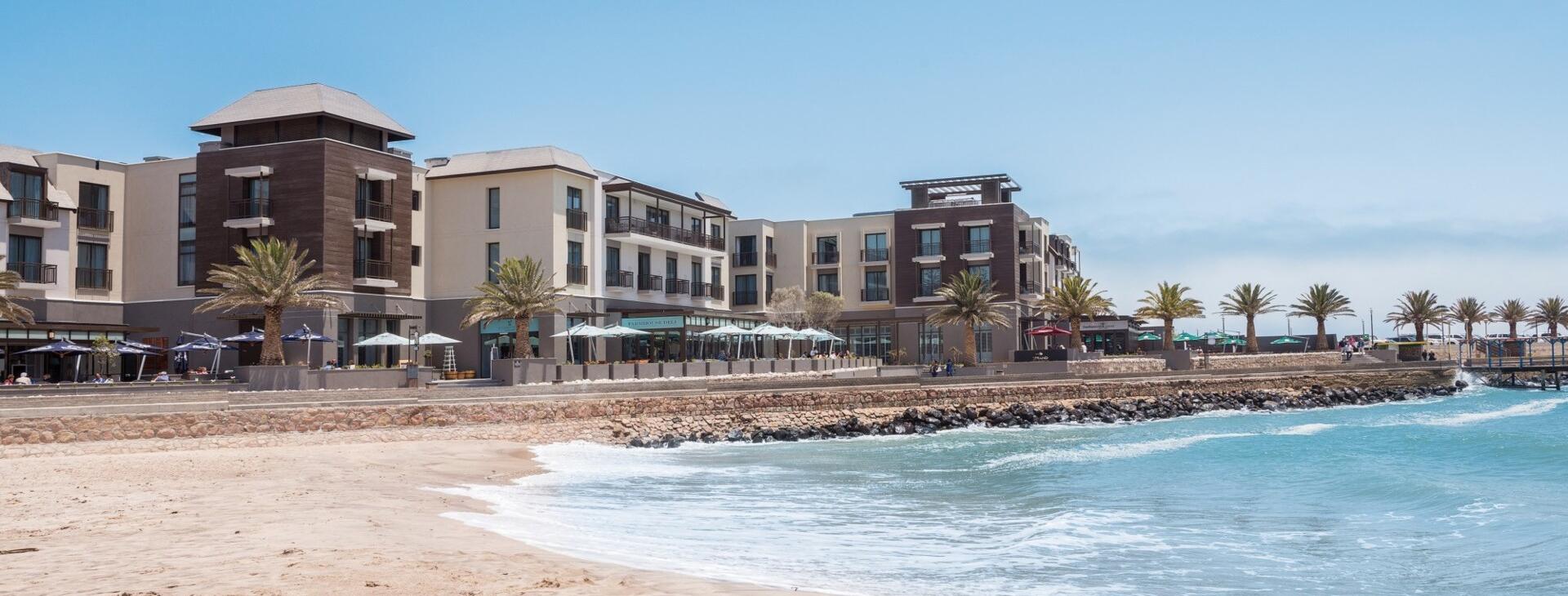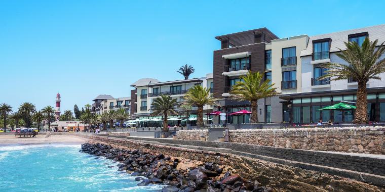 Hotel położony jest na krańcu promenady Mole, tuż przy plaży, kilka minut spacerem od centrum Swakopmund. W najbliższym otoczeniu znajdują się Muzeum Swakopmund, latarnia morska, sklepy z lokalnym rzemiosłem i kawiarnie. Dojazd z lotniska w Walvis Bay zajmuje ok. 40 minut, a z Windhuk – około czterech godzin. To doskonała baza do poznawania pustyni Namib, wydm Sandwich Harbour i Wybrzeża Szkieletowego.
