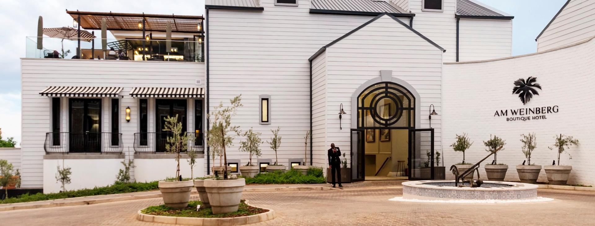 The Weinberg to pięciogwiazdkowy hotel usytuowany w spokojnej dzielnicy Klein Windhoek, w otoczeniu zieleni i z dala od miejskiego hałasu. Jego architektura rozciąga się wokół historycznego budynku winnicy, który stanowi serce kompleksu — nowoczesne skrzydła harmonijnie z nim współgrają. Obiekt stanowi doskonałą bazę dla tych, którzy odwiedzają Windhoek jako przystanek przed dalszym safari w Namibii.