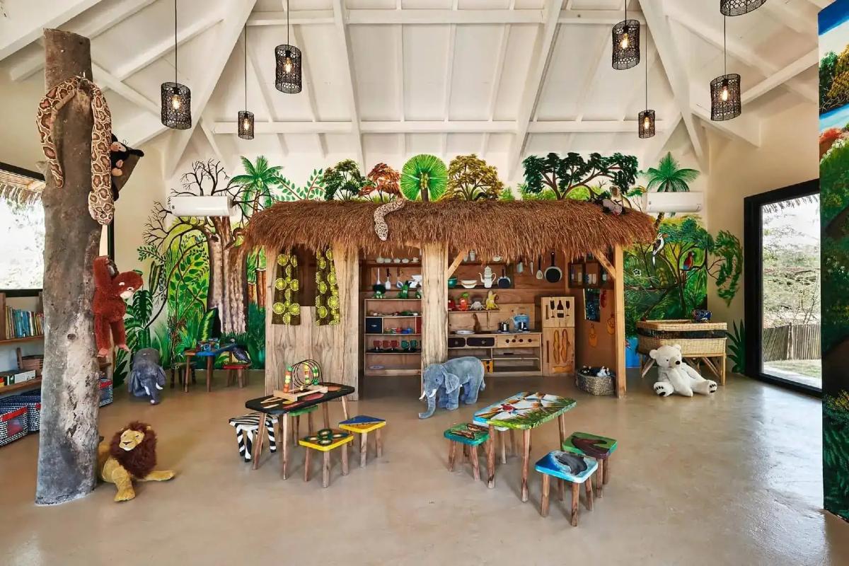 • Sala zabaw prowadzona przez zespół opiekunów – z dużą liczbą gier, książek i materiałów plastycznych; w aranżacji m.in. replika senegalskiej chaty i dekoracje inspirowane Afryką