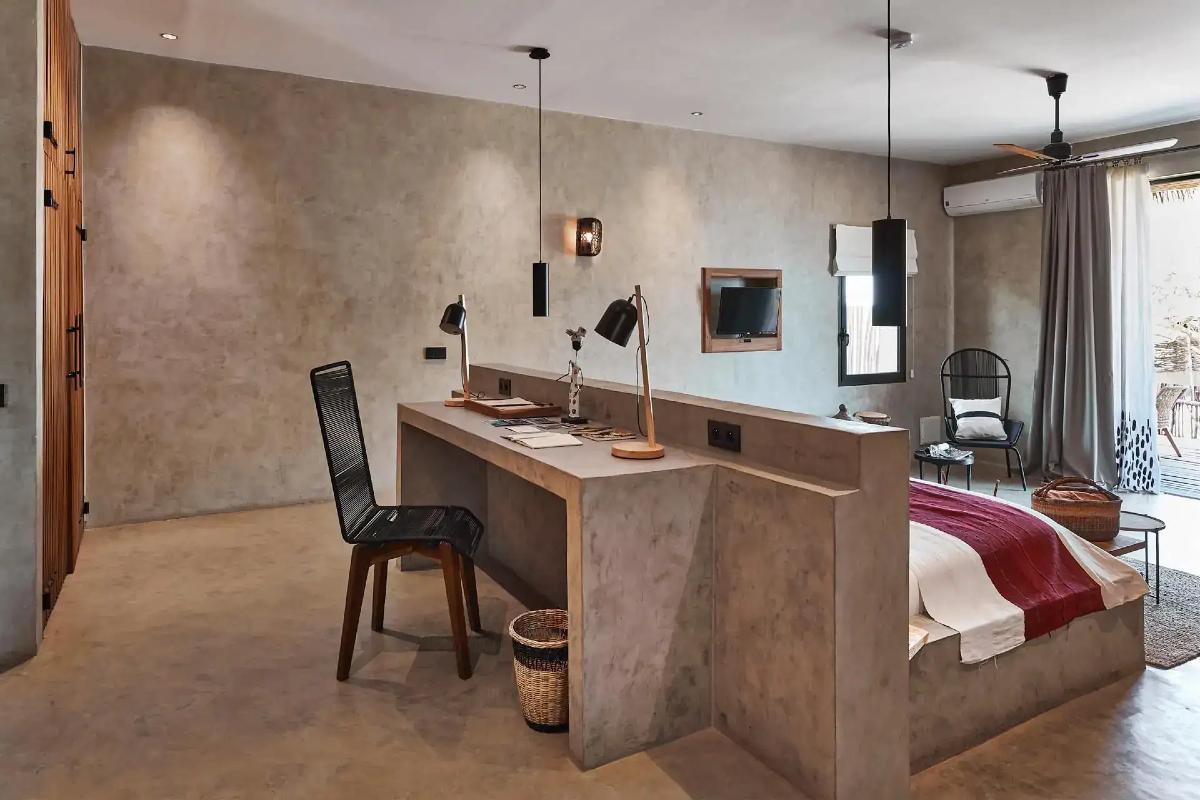• 2-room Villa with Pool (160 m²) – liczba osób: maks. 4 dorosłych + 4 dzieci (<12 lat), łóżko typu king-size i dwa łóżka pojedyncze, prywatny basen, duży taras z łóżkami dziennymi i leżakami, prysznic zewnętrzny.