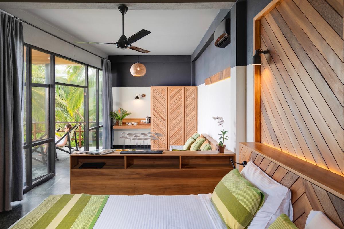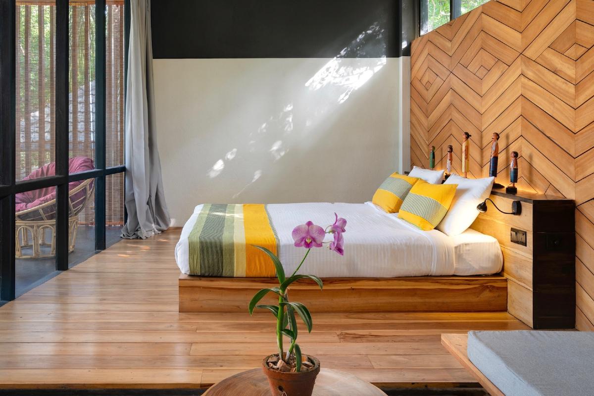 W hotelu znajduje się zaledwie 15 pokoi, których wystrój utrzymany jest w ekologicznym stylu. Okna, sięgające od podłogi aż po sufit, wychodzą na ocean lub ogród. Każdy pokój wyposażony jest w klimatyzację, zestaw do parzenia kawy i herbaty, suszarkę, taras lub balkon oraz komplet wypoczynkowy. W łazienkach znajdują się prysznice. Dostęp do Wi-Fi w pokojach jest bezpłatny.