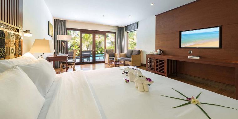 - Oceanfront Jacuzzi Villa (82 m²) – liczba osób: maks. 2 dorosłych, łóżko typu king-size, prywatne jacuzzi, taras z leżankami i panoramicznym widokiem na morze, ekspres do kawy, położona przy samej plaży.