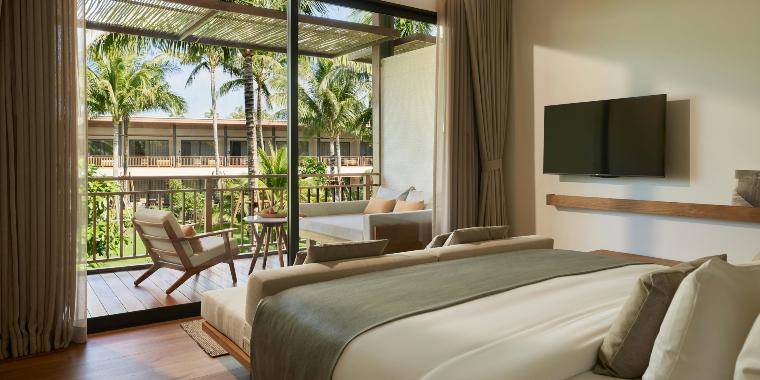 - Deluxe King Pool Access Room (55 m²) – liczba osób: maks. 2 dorosłych, łóżko typu king-size, bezpośredni dostęp do basenu z tarasu, strefa wypoczynkowa na zewnątrz.