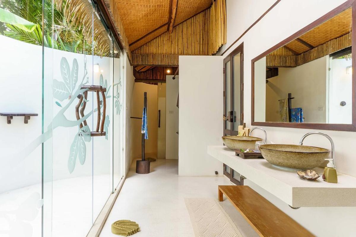 • Deluxe Villa (73 m²) – maks. 2 dorosłych + dziecko, łóżko typu king-size lub dwa pojedyncze, widok na ogród, prysznic zewnętrzny.
