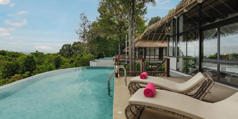 • One Bedroom Beachfront Pool Villa (150 m²) – maks. 3 dorosłych, łóżko typu king-size, prywatny basen, wanna i prysznic wewnętrzny oraz zewnętrzny, bezpośredni dostęp do plaży.