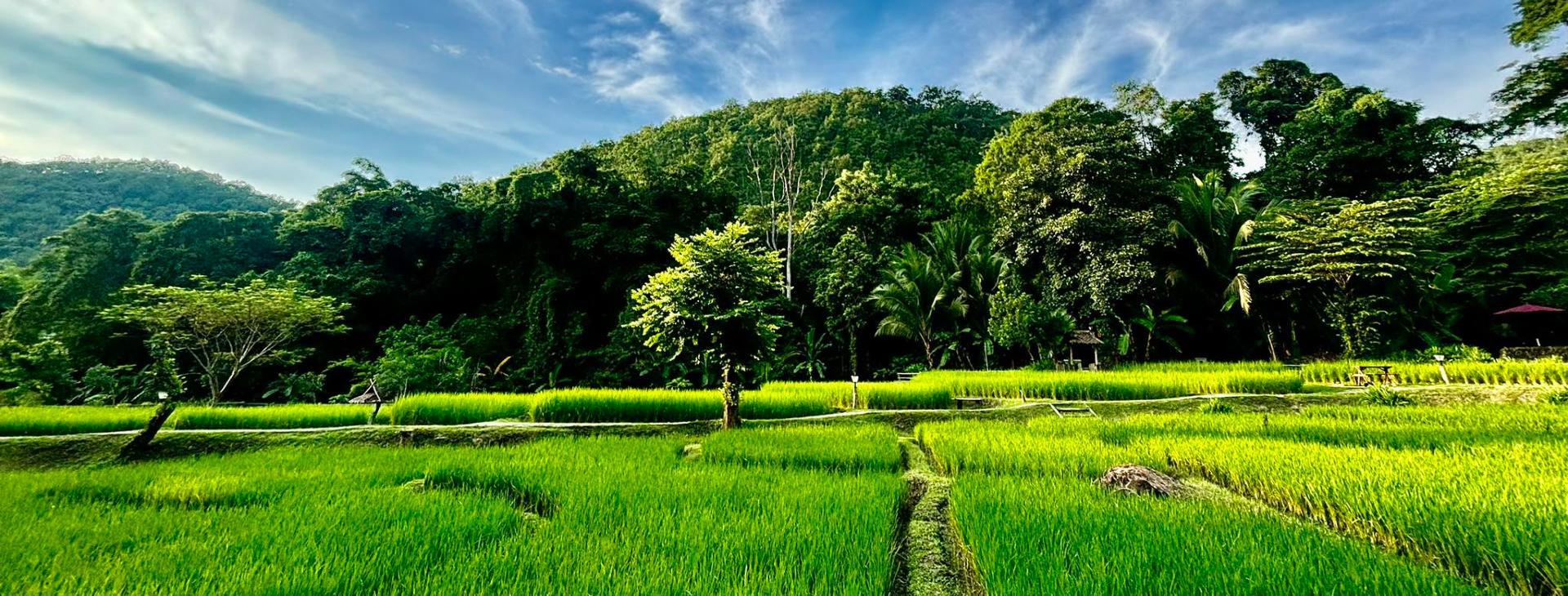 - Suite (25 m²) – liczba osób: maks. 2 dorosłych, łóżko typu king-size lub dwa pojedyncze, widok na pola ryżowe lub jezioro, czajnik, sejf, łazienka z prysznicem.