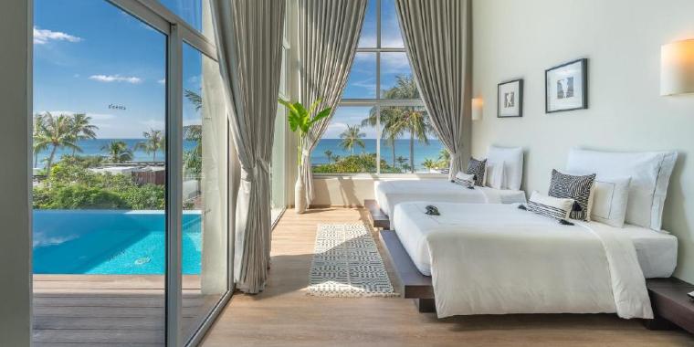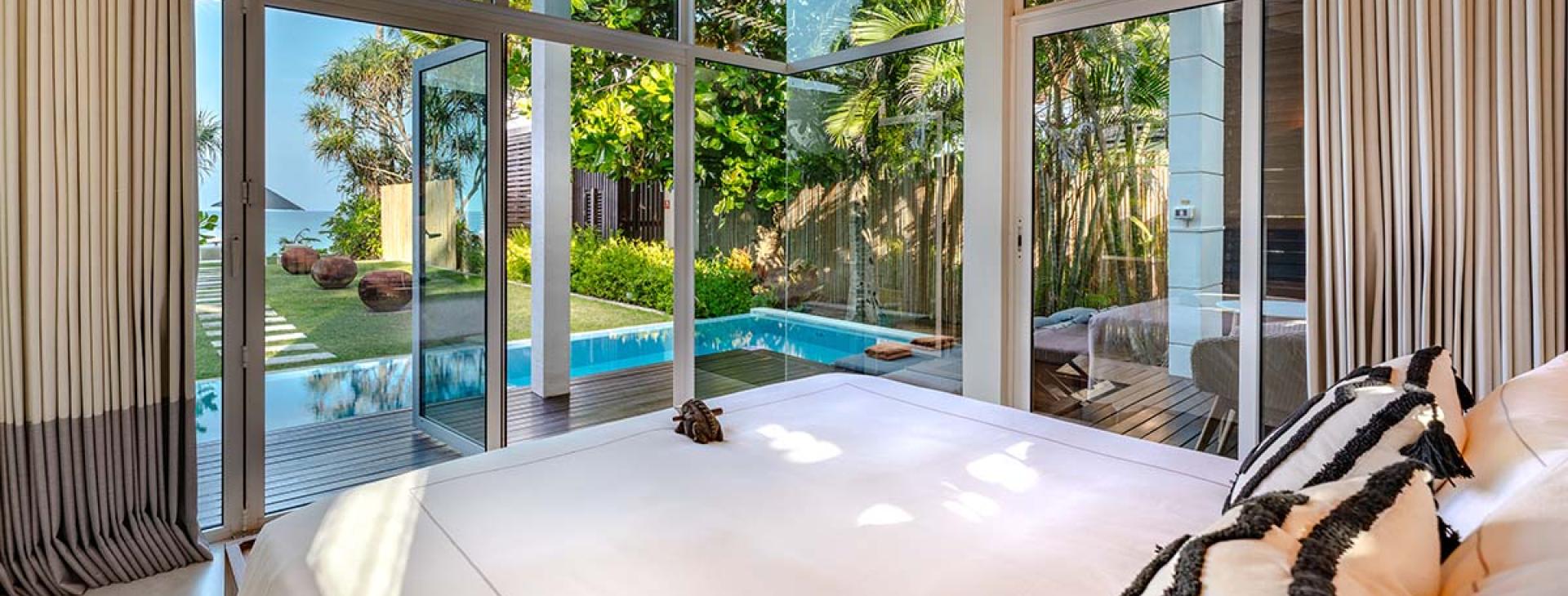 - 3 Bedroom Beachfront Villa (500 m2) – liczba osób: maks. 6 dorosłych + 2 dzieci, łóżka typu king-size, dwupoziomowa willa, część wypoczynkowa, jadalnia, wyposażona kuchnia, taras, prywatny basen, widok na morze, bezpośredni dostęp do plaży, trzy łazienki z wanną i prysznicem.