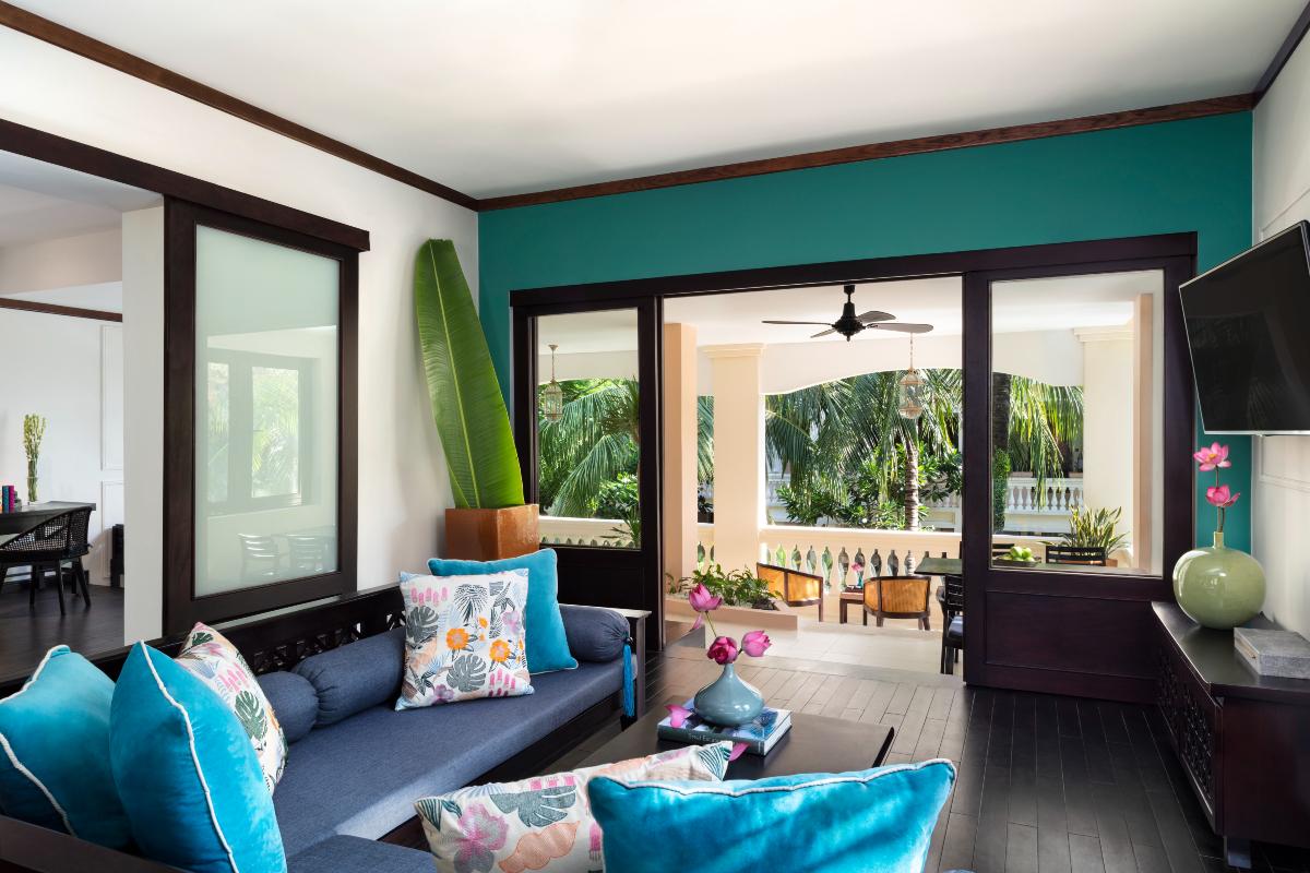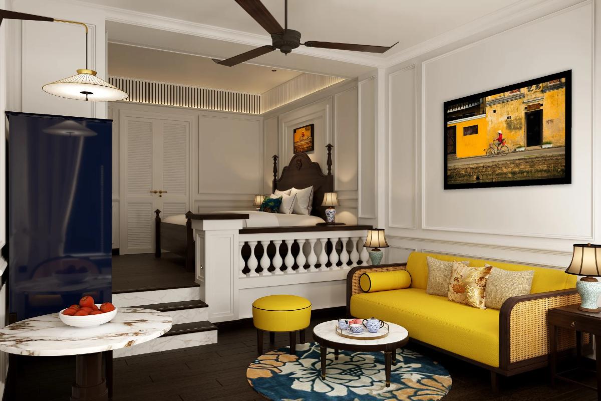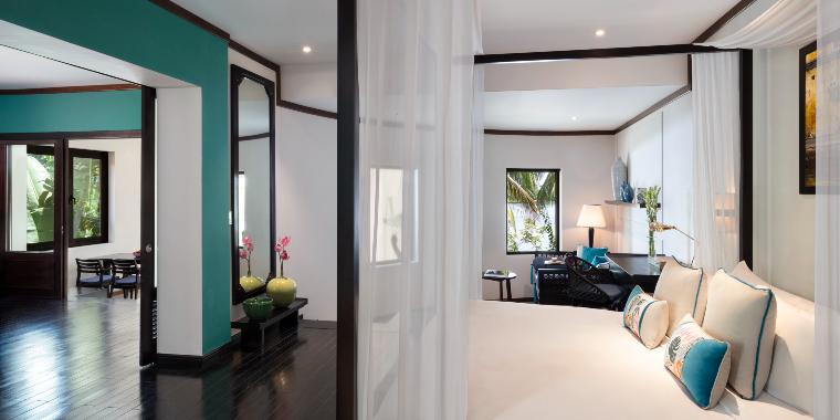 - Thu Bon River Suite (58 m²) – liczba osób: maks. 3 dorosłych + dziecko, łóżko typu king-size lub dwa pojedyncze, widok na rzekę, przestronny salon, balkon z miejscem do wypoczynku, mata do jogi.