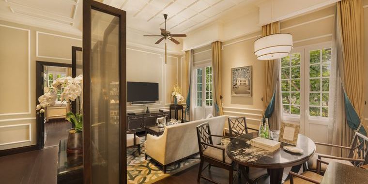 - Somerset Maugham Suite (70 m²) – liczba osób: maks. 3 dorosłych, łóżko typu king-size, salon i sypialnia, balkon, łazienka z prysznicem i wanną, bufet śniadaniowy, podwieczorek (15:00–16:30) i wieczorne koktajle (17:00–19:00) oraz całodobowa obsługa konsjerża.