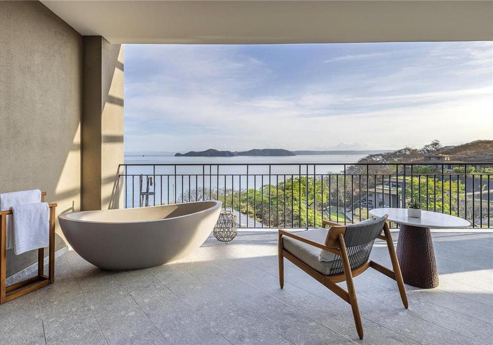• Bahia View 1 King Corner Room Large Balcony – liczba osób: maks. 3, łóżko typu king, oddzielna toaleta, umeblowany balkon z wolnostojącą wanną, widok na ocean.