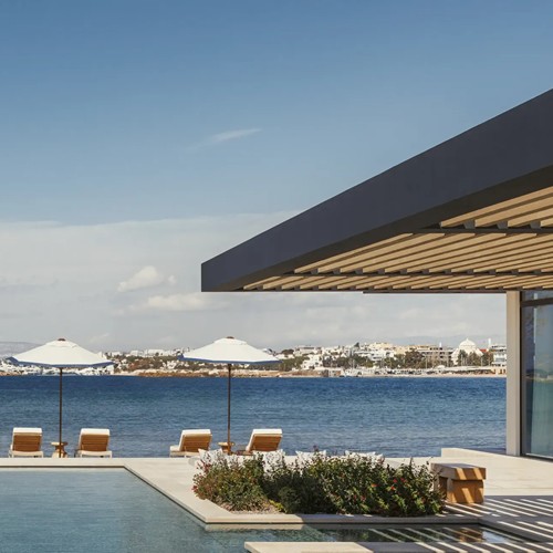 • Junior Suite with Plunge Pool, Sea-View (41-48 m²) – liczba osób: maks. 3 dorosłych lub 2 dorosłych i maks. 2 dzieci, sypialnia z łóżkiem typu king lub 2 łóżkami pojedynczymi, łazienka z prysznicem, część dzienna z rozkładaną sofą, umeblowany taras z basenem, widok na morze.