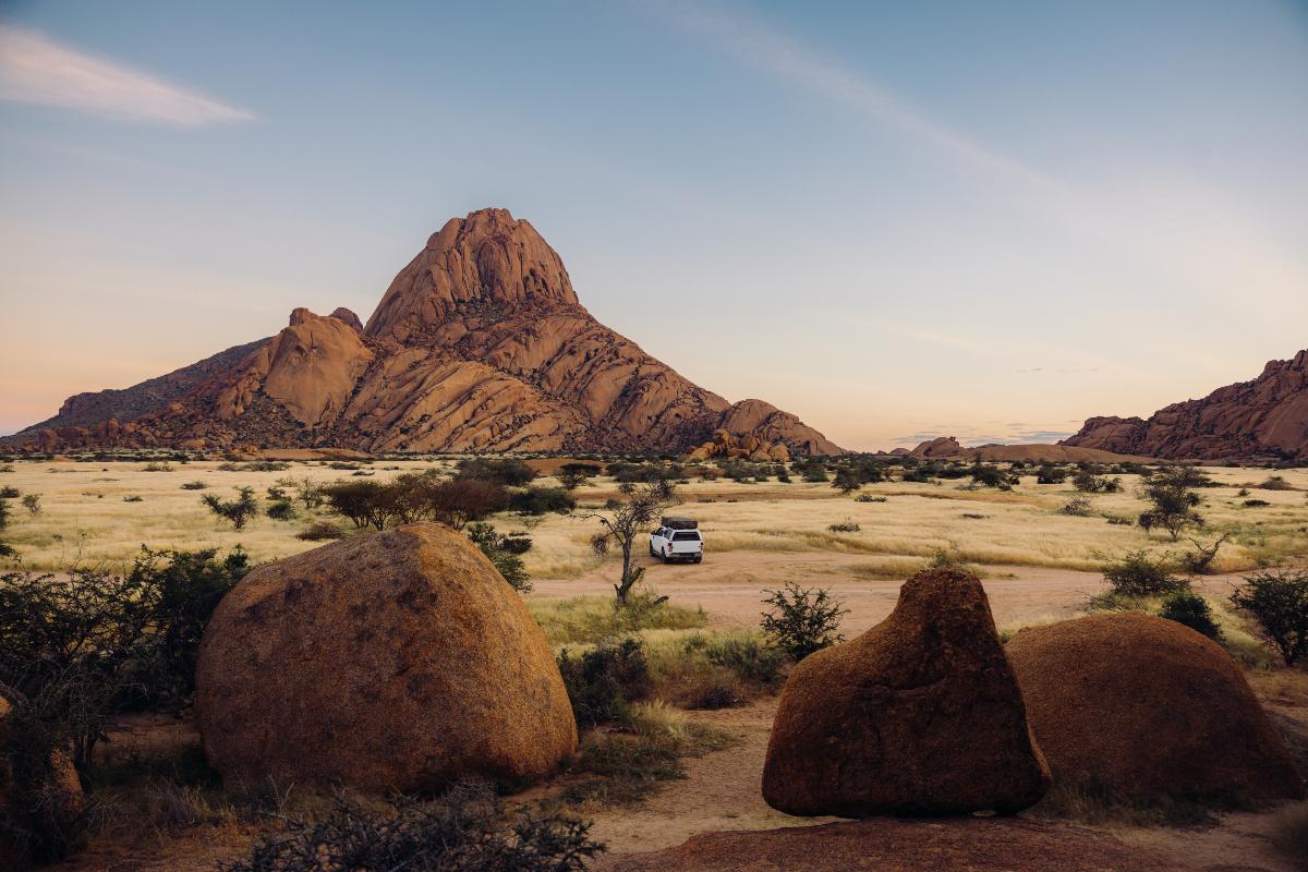 Będąc w regionie Damaraland udać się w rejony góry Spitzkoppe. Spitzkoppe, często nazywane "Matterhornem Afryki," to jedno z najbardziej malowniczych miejsc w Namibii. Ten imponujący granitowy masyw, wznoszący się na wysokość ponad 1,7 tys. m n.p.m., stanowi ikonę krajobrazu Namibii, przyciągając miłośników przyrody, wspinaczy oraz fotografów z całego świata. Spitzkoppe znajduje się na pustynnych terenach pomiędzy Wybrzeżem Szkieletów a wschodnią częścią Namibii, około 150 km na północny wschód od miasta Swakopmund i około 100 km na zachód od miasta Usakos. Jest to miejsce odosobnione, co sprawia, że cisza i surowe piękno krajobrazu stają się dominującymi elementami tej lokalizacji. Wspinaczka na jeden z licznych szczytów granitowych, eksploracja jaskiń czy podziwianie starożytnych malowideł naskalnych, to tylko niektóre z atrakcji, które czekają na odwiedzających. Miejsce to jest również rajem dla fotografów, oferując niezliczone możliwości uchwycenia piękna Namibii, szczególnie o wschodzie i zachodzie słońca, gdy granitowe skały przybierają niezwykłe odcienie czerwieni i pomarańczy.