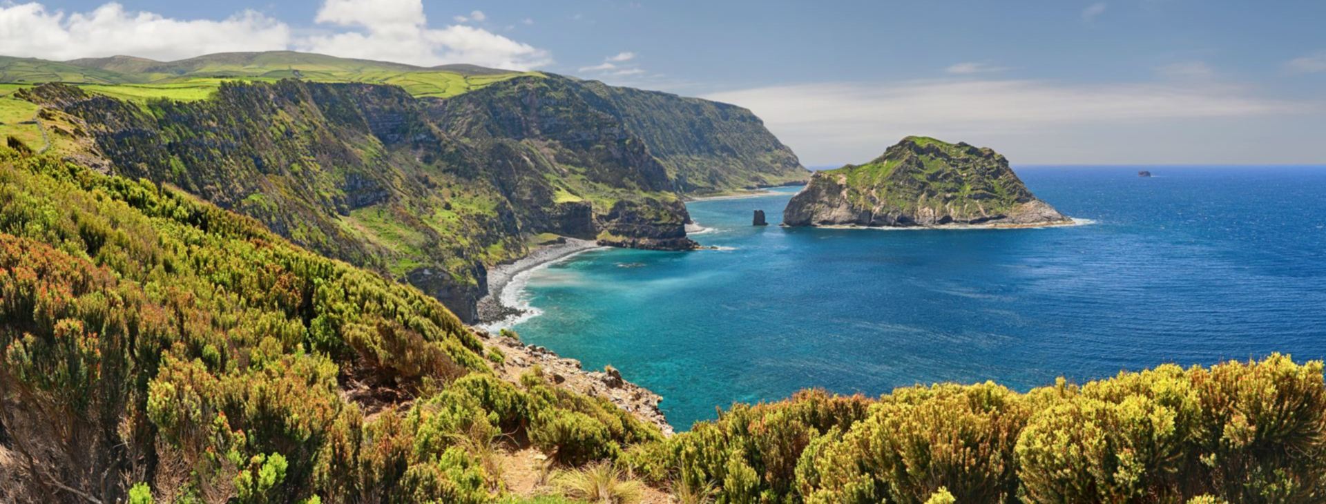 Najbardziej wysunięta na zachód wyspa Europy, należąca do Azorów, od lat uchodzi za jedną z najbardziej dzikich i malowniczych. Flores zachwyca krajobrazem, w którym natura wciąż gra pierwsze skrzypce. Stromo opadające klify, głębokie doliny, jeziora wypełniające dawne kratery wulkaniczne i dziesiątki wodospadów sprawiają, że wyspa wygląda jak fragment świata sprzed ingerencji człowieka. Intensywna zieleń pastwisk, paproci i lasów kontrastuje tu z ciemnym bazaltem skał oraz bezkresem Atlantyku. Nieprzypadkowo Flores bywa nazywana „ogrodem Azorów” – wilgotny klimat i częste opady tworzą idealne warunki do bujnego rozwoju roślinności, a krajobraz zmienia się niemal z każdą godziną.