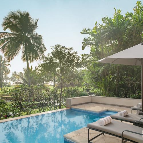 5* hotel położony przy plaży, na Goa. Oferuje lekcje jogi i zaplecze do uprawiania sportów.